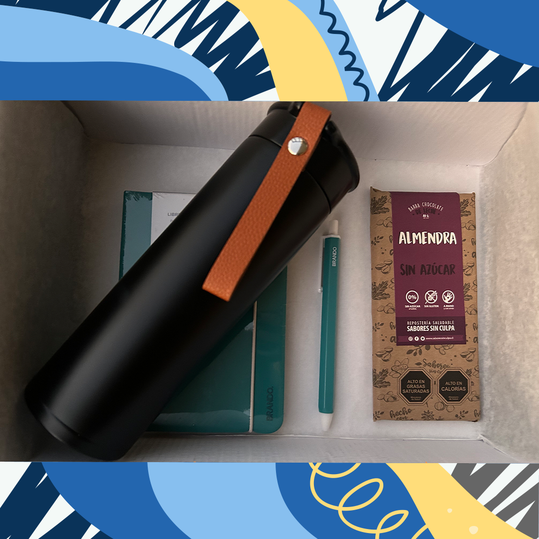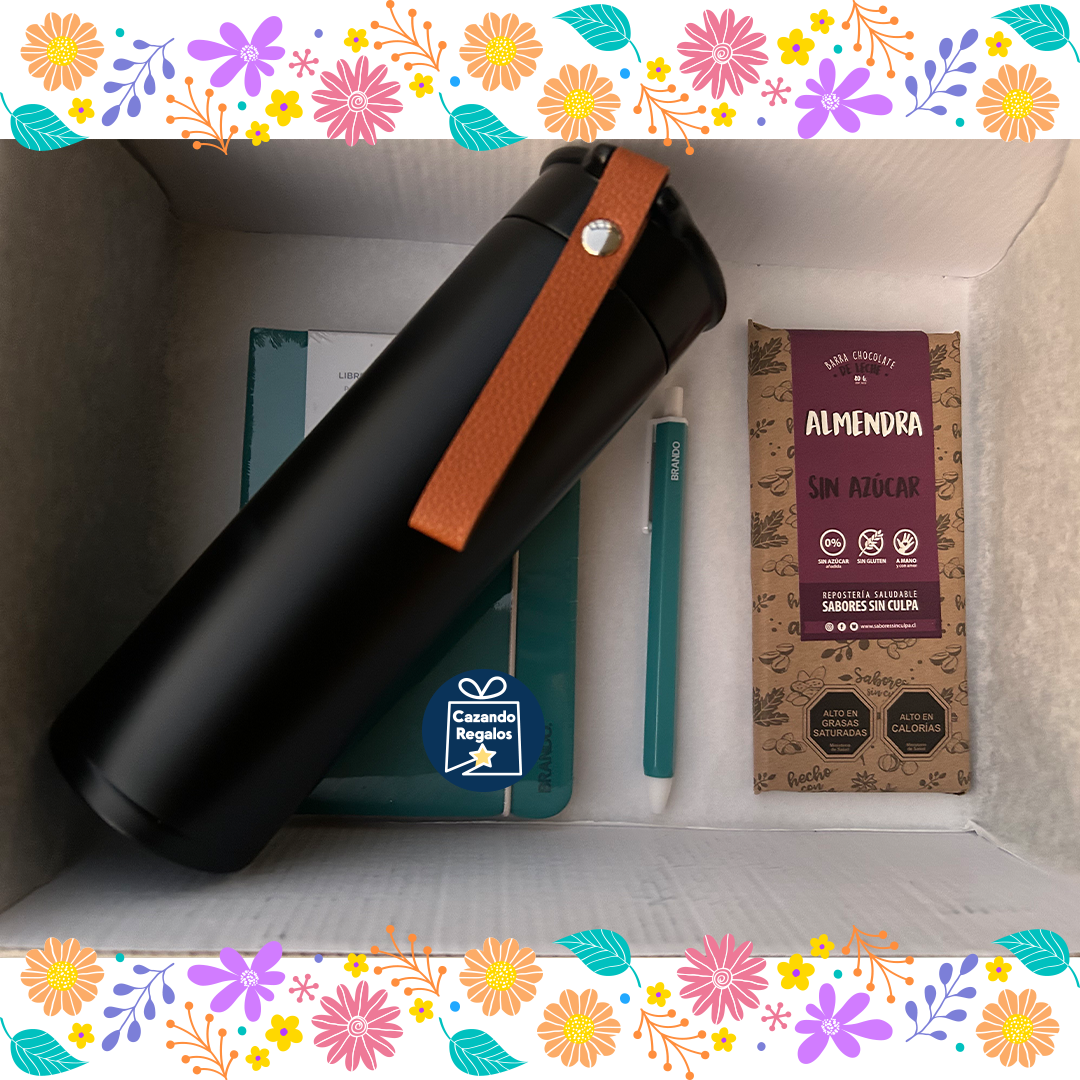 La caja de regalo Esencial Nómada reúne elementos clave para acompañarte en tus salidas: una botella para mantener tus bebidas a la temperatura ideal, chocolate sin culpa para un dulce saludable, y una libreta con lápiz para capturar ideas o momentos importantes. Un set pensado para quienes valoran funcionalidad y bienestar en su día a día.